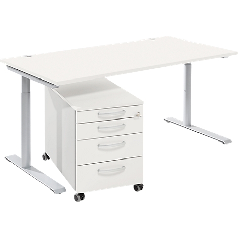 Komplettset Schreibtisch Und Rollcontainer Ergo T Einstufig Hohenverstellbar Tisch B 1600 Mm Gunstig Kaufen Schafer Shop
