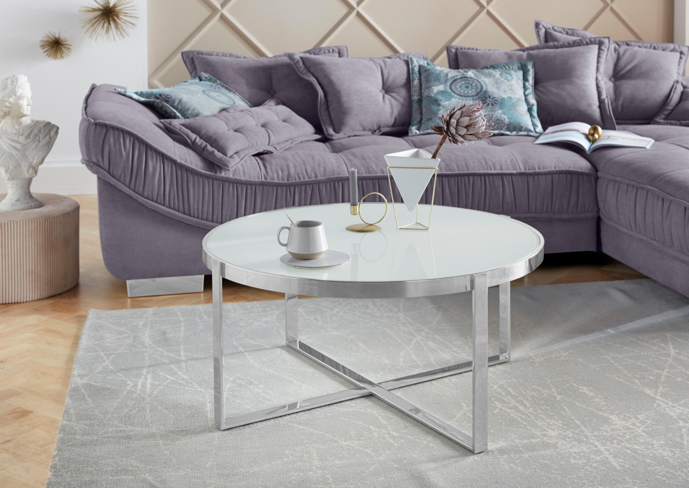Leonique Couchtisch Lorian Rund Mit Modernem Chromgestell Und Glasplatte Auf Raten Bestellen Quelle De