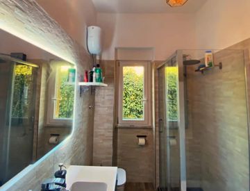Mappa di Via Della Riserva Del Bagno in Roma. Via della Mandriola Riserva Naturale di Malafede - Roma. Sala hobby angolo cottura con camino servizio con vasca e cromoterapia sala cinema impianto canalizzato di aria condiziona.