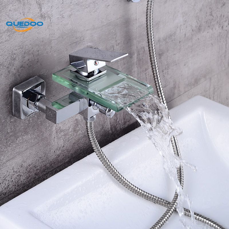 Acquista Doccia Rubinetti Fissato Al Muro Quadrato Cascata Di Vetro Beccuccio Bagno Privato Vasca Handheld Set Doccia Rubinetto Miscelatore Vasca Da Bagno Lucidato Rubinetto A 54 35 Dal Sophine12 It Dhgate Com
