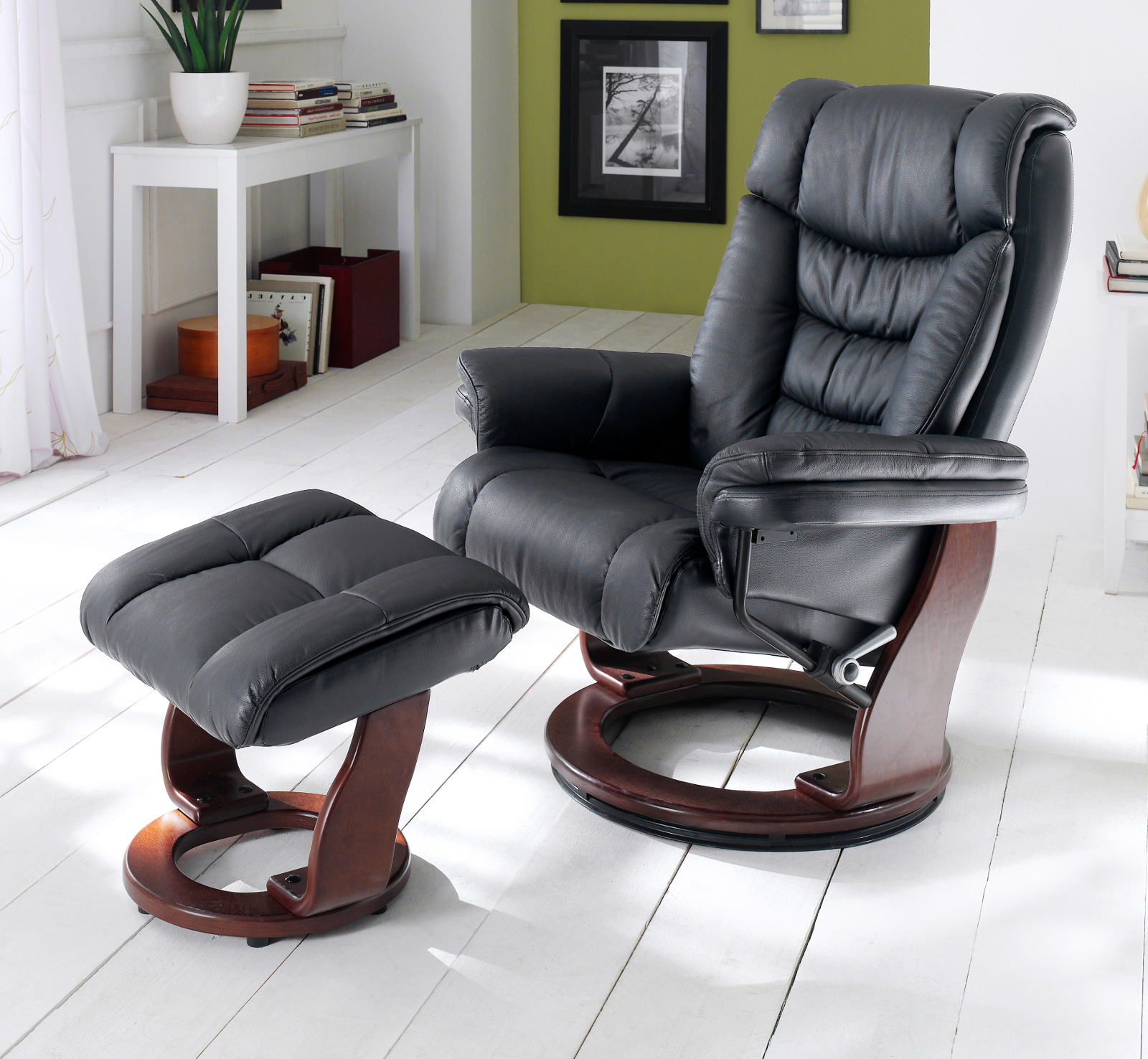 Tv Relaxsessel Adrano In Leder Schwarz Mit Hocker Pharao24 De